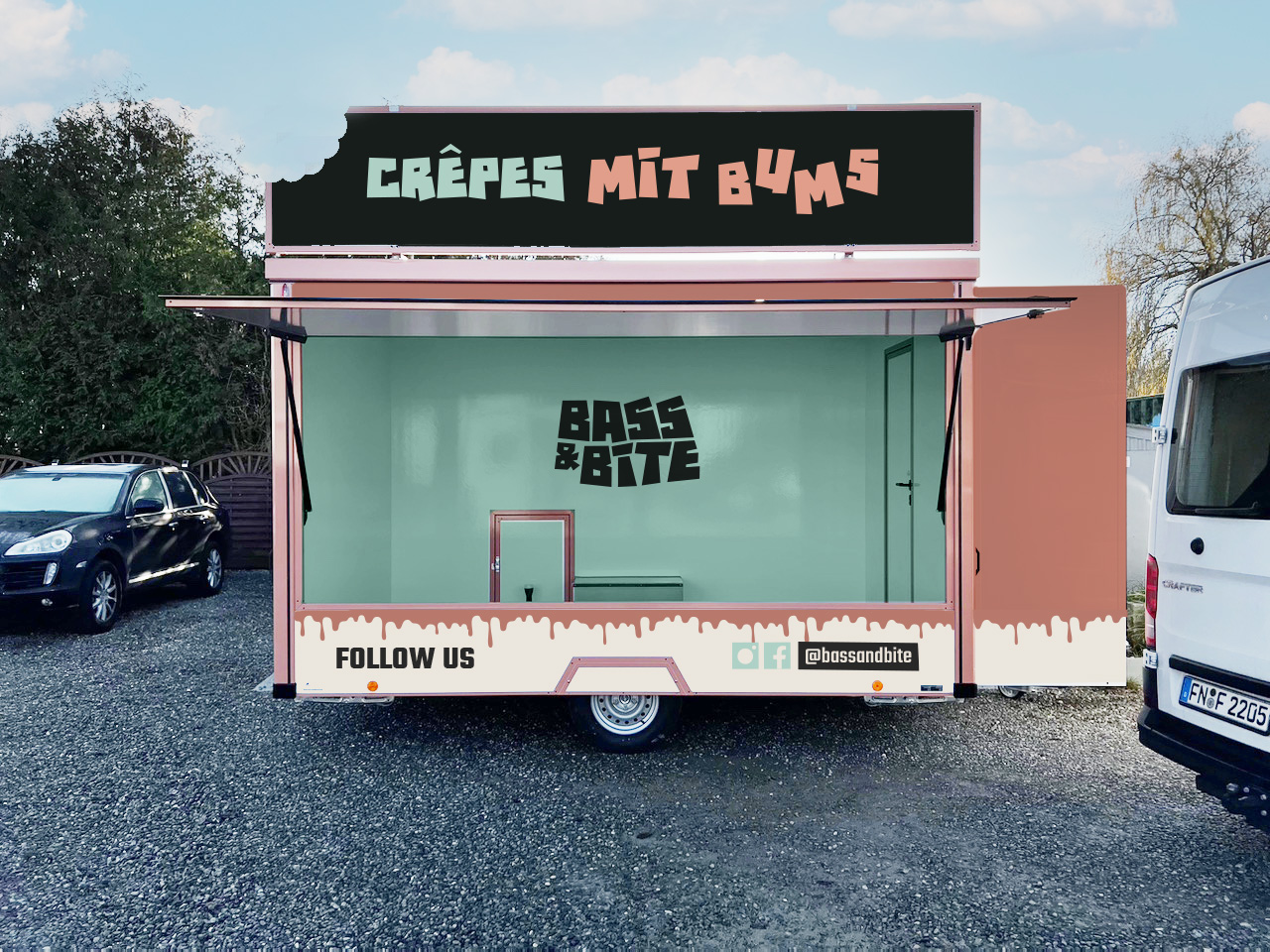 Wenn wir an Streetfood denken, dann denken wir an bunt, laut, Musik. Das war auch die Grundidee aus der der neue Name „Bass & Bite“ entstanden ist. Die neue Marke sollte deutlich auffälliger und moderner daherkommen. Eine urbane Typografie und ein plakativer Stil prägen den neuen Look. Besonders einprägsam ist der „Bite“ als gestalterisches Hauptelement. Eigens entwickelte Food-Truck-Icons und die spezielle Farbwelt runden das Gesamtkonzept ab.